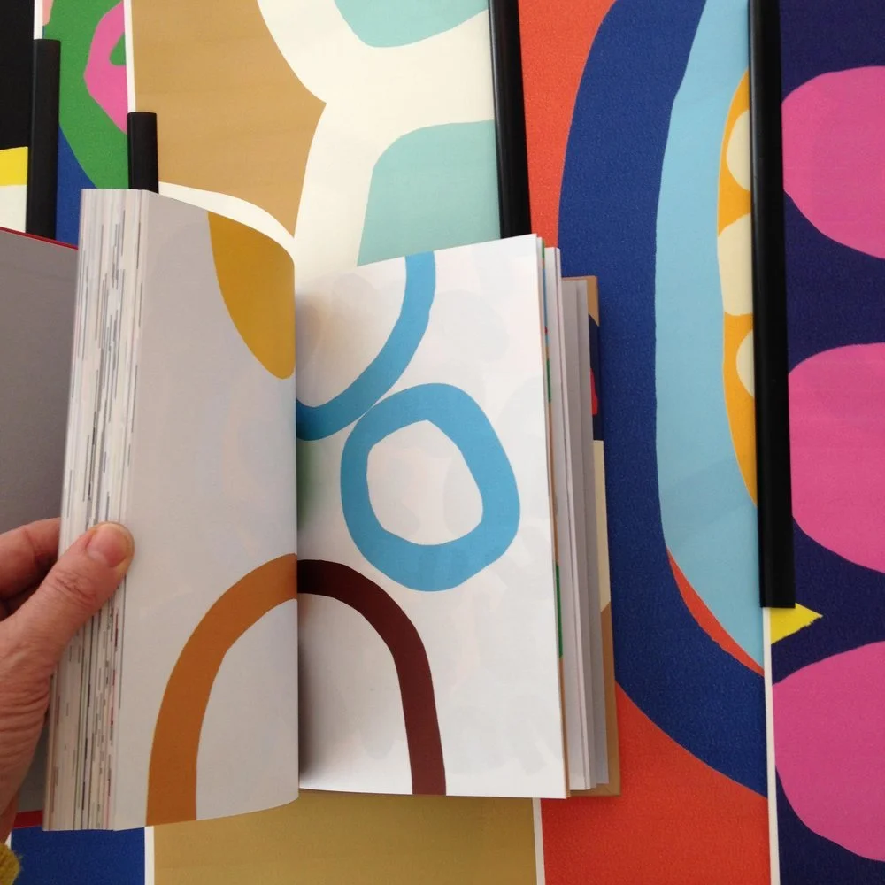 Hand-drawn gouache designs in playful compositions. Rings, rectangles, semi-circles, dotted lines. Work date 2017.